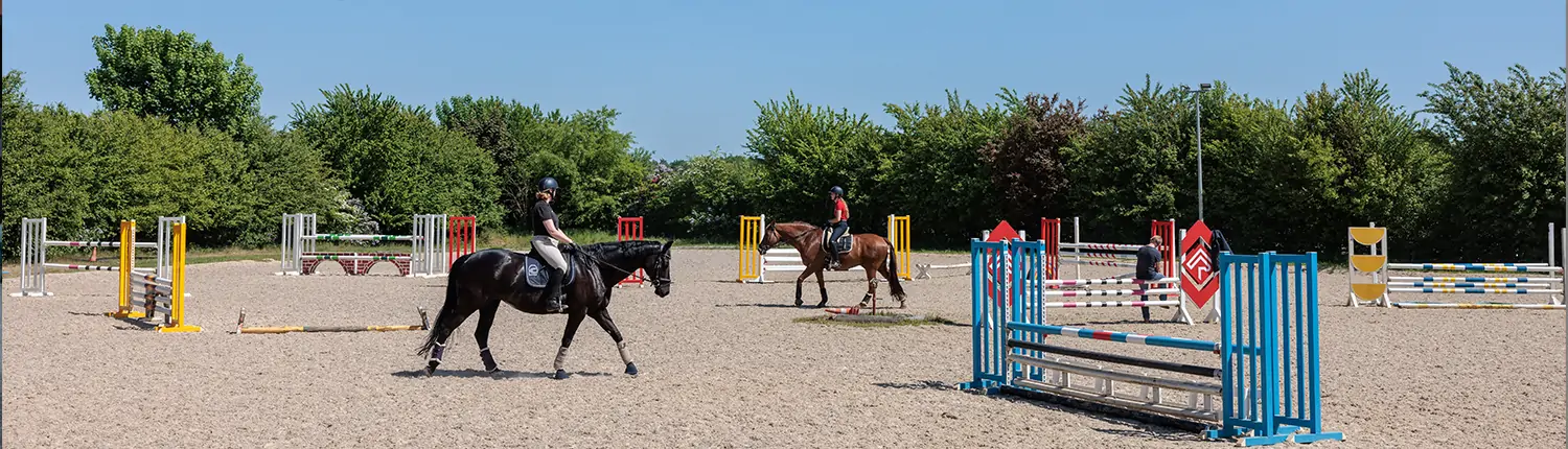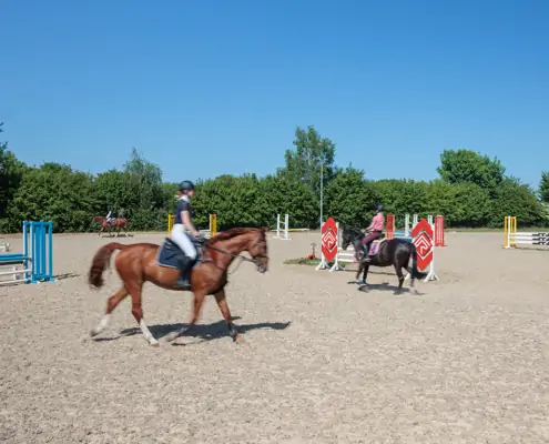 Unsere Reitanlage mit zwei Reithallen und verschiedenen Außenanlagen bietet auch Profi-Reiter:innen hervorragende Trainingsbedingungen. Ein zusätzliches Highlight ist das alle zwei Jahre auf unserer Anlage stattfindende Reit- und Springturnier.