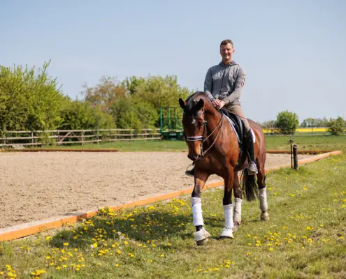 Profireiter:innen und Sportpferde finden bei uns beste Voraussetzungen für eine umfassende Aus- und Weiterbildung in exklusiver Atmosphäre vor. Unsere Philosophie: Sportpferde sind Hochleistungssportler und werden entsprechend ausgebildet, trainiert und gepflegt.