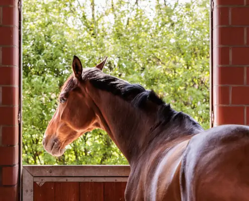 Neben den hervorragenden Trainingsbedingungen garantieren wir auch eine artgerechte Haltung, Dazu gehören im Sommer tägliche Weidegänge in Gruppen sowie regelmäßige Paddockzeiten im Winter.