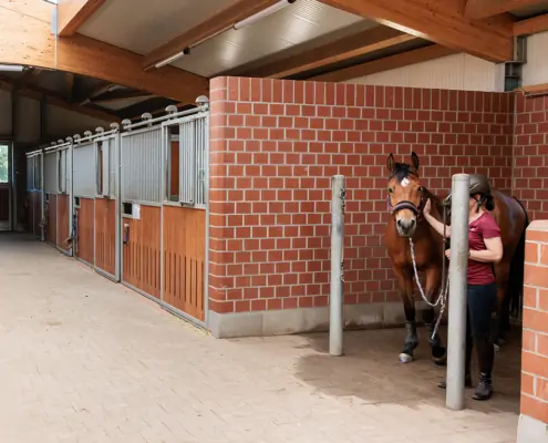 Unser Hof verfügt über mehrere Stalltrakte mit Innen- und Außenboxen. Der neueste Stalltrakt stammt aus dem Jahr 2020 und bietet den Pferden somit modernsten Komfort.